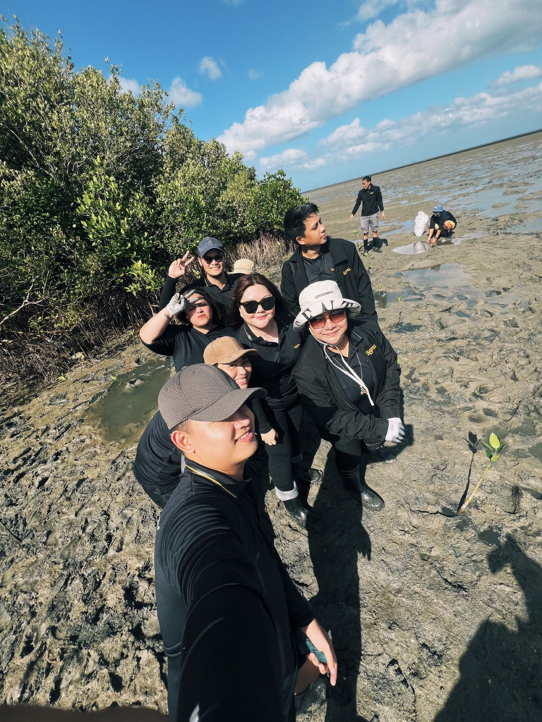 The team, together with some of the locals, walked about a kilometer from the shore to get to the planting site while the tide was low. Doing this under the heat of the sun proved to be a challenge because it was like walking on mud (good thing that the team came prepared with our knee-high boots and protective wear!). Nonetheless, we enjoyed this experience as we were able to breathe fresh air, shared laughter, bonded, and worked together in our little way to help conserve our environment.